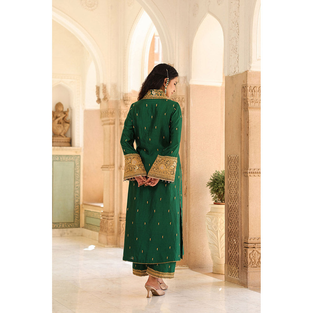 Label Niti Bothra Green Riwayat V-Neck Kurta with Palazzo and Dupatta (Set of 3)