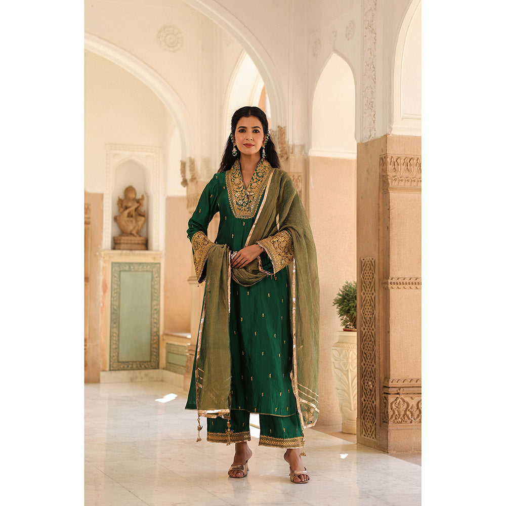 Green Riwayat V-Neck Kurta with Palazzo and Dupatta (Set of 3)