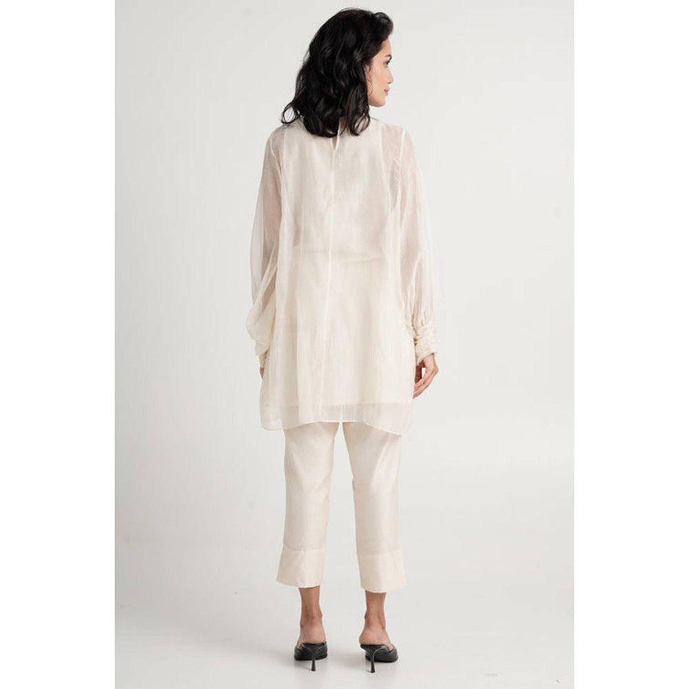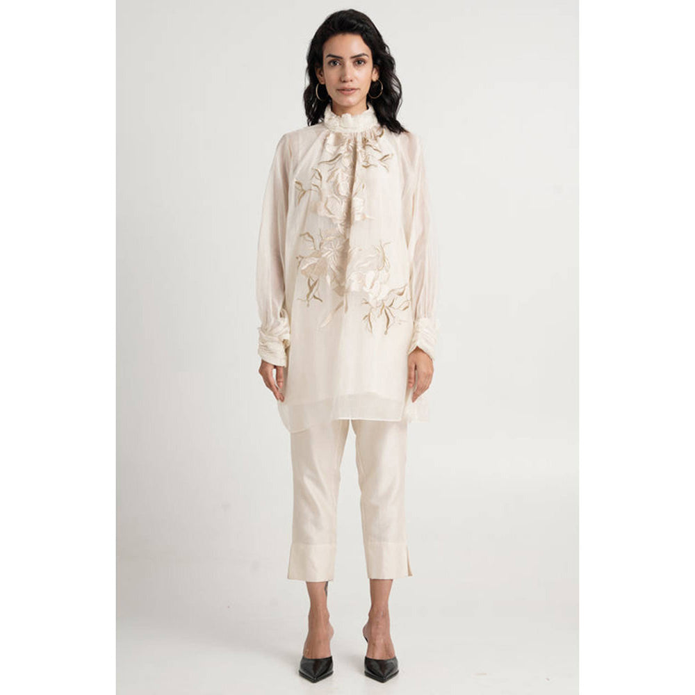 Women Ivory Chanderi Silk Floral Tunic with Pant
