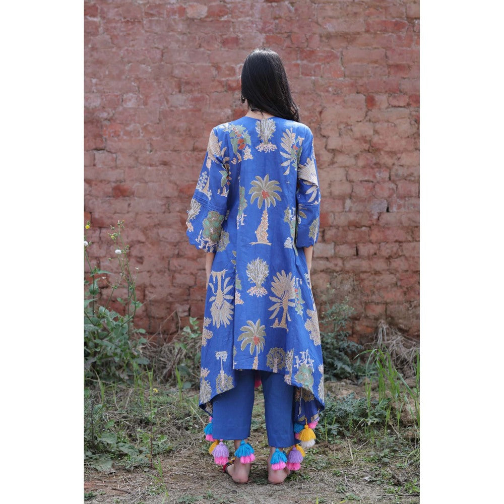 Tassel Bloom Blue Kurta with Pant (Set of 2)