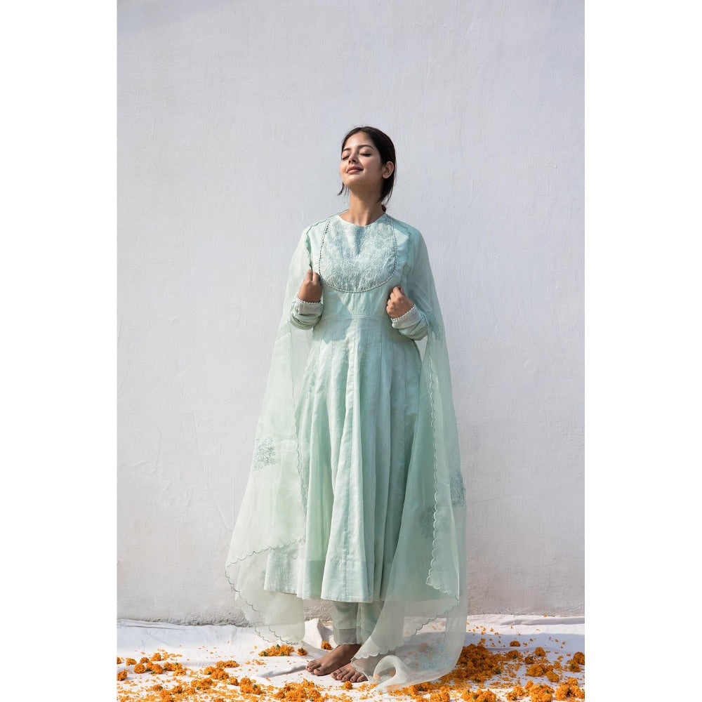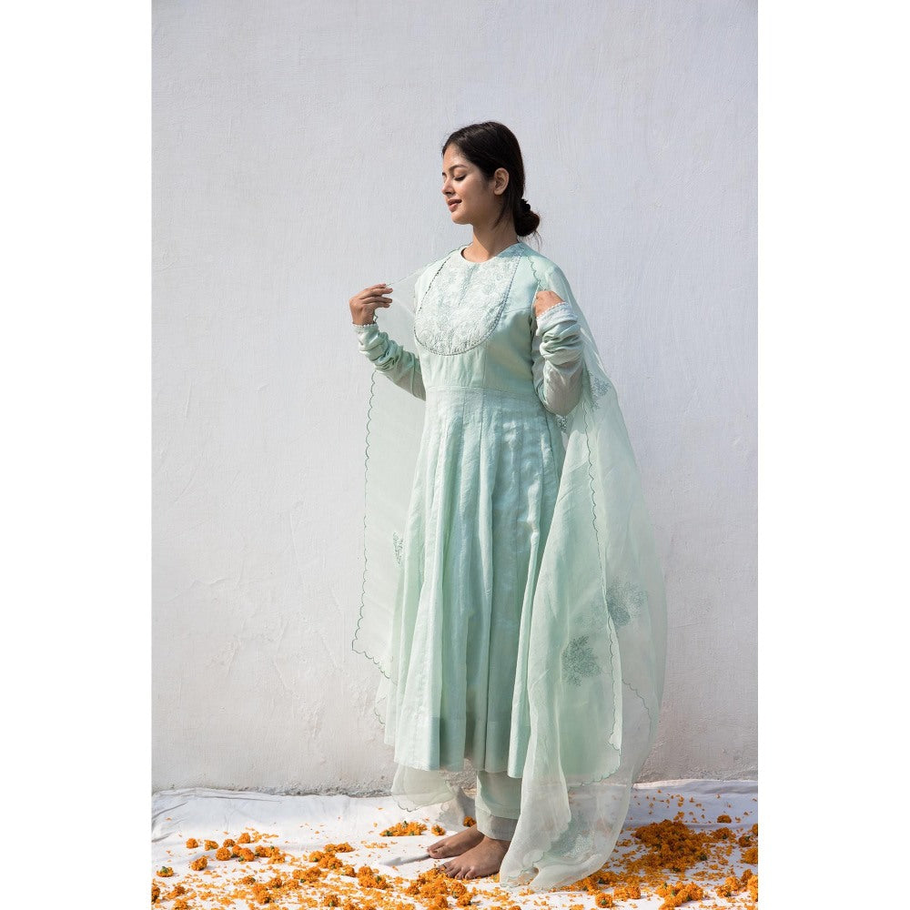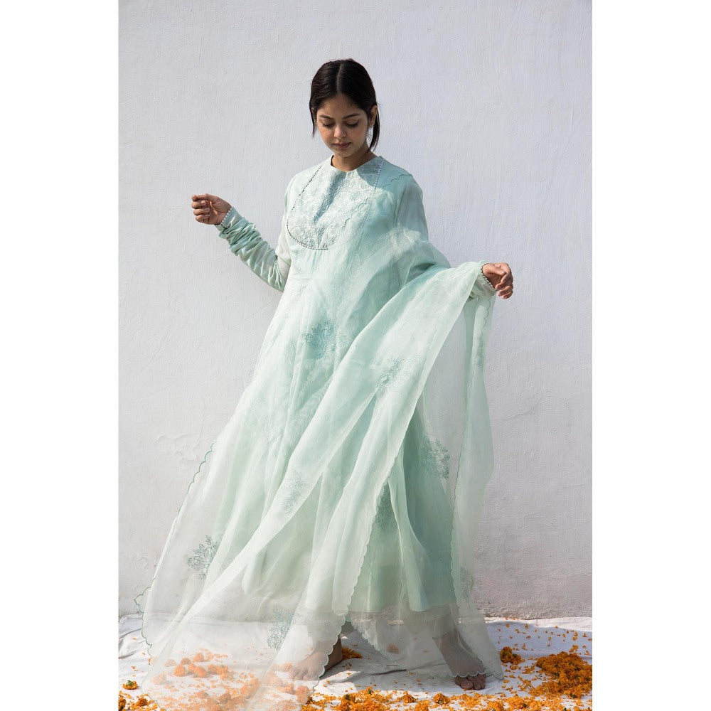 MITHI SUPARI Mint Green Bela Anarkali Kurta with Pant and Dupatta (Set of 3)