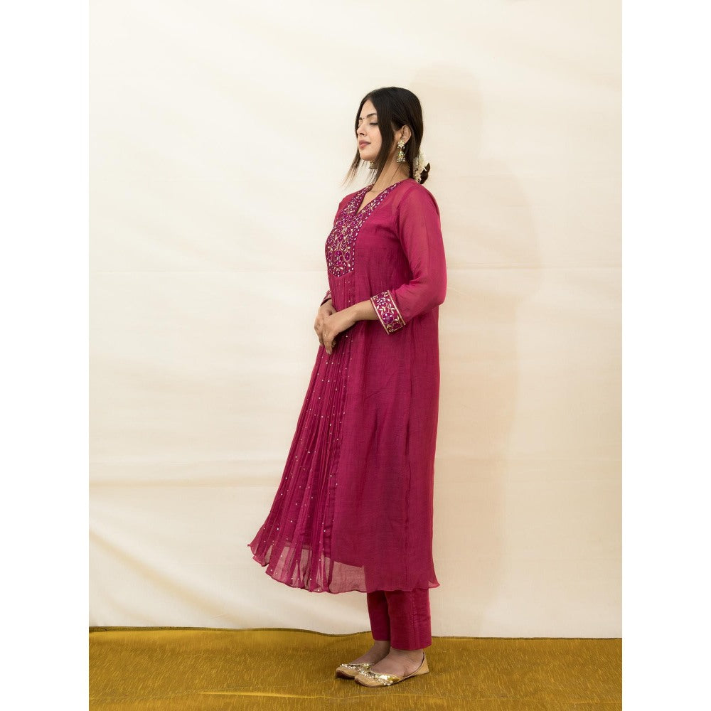 Plum India Embroidered and Mirror Work Anarkali Kurta with Pant (Set of 2)