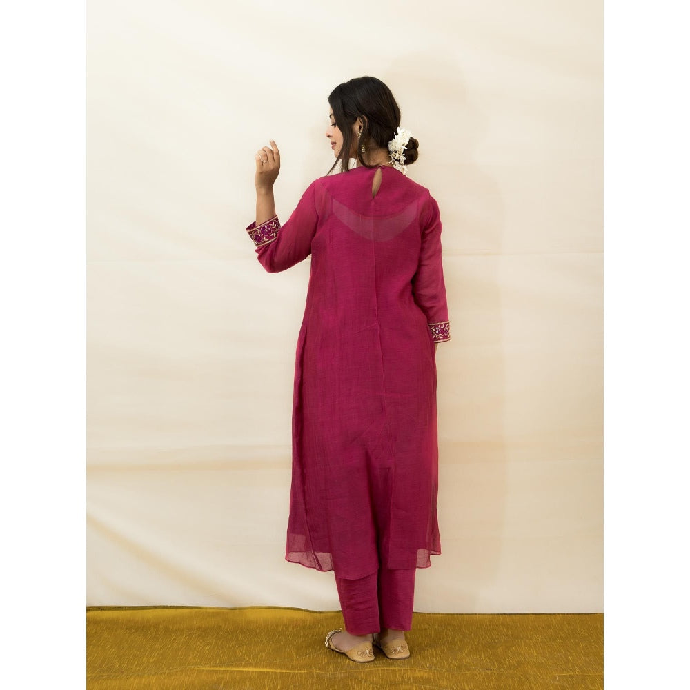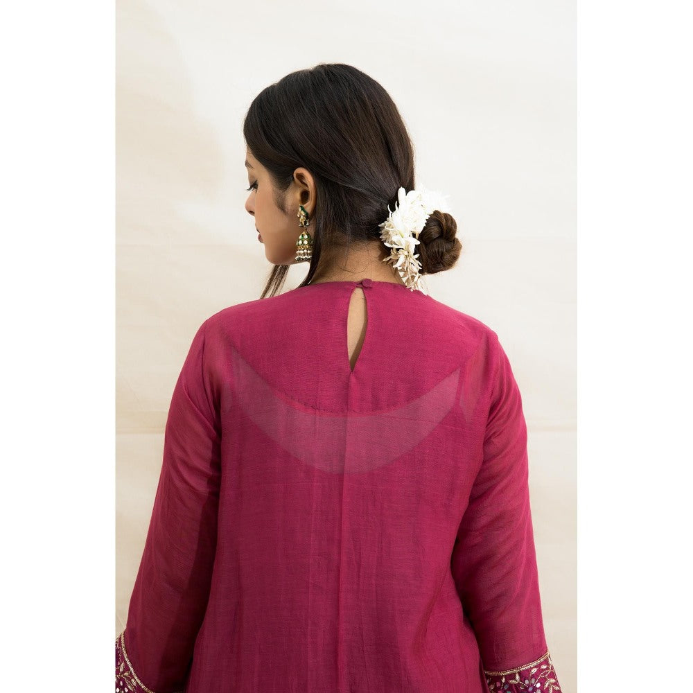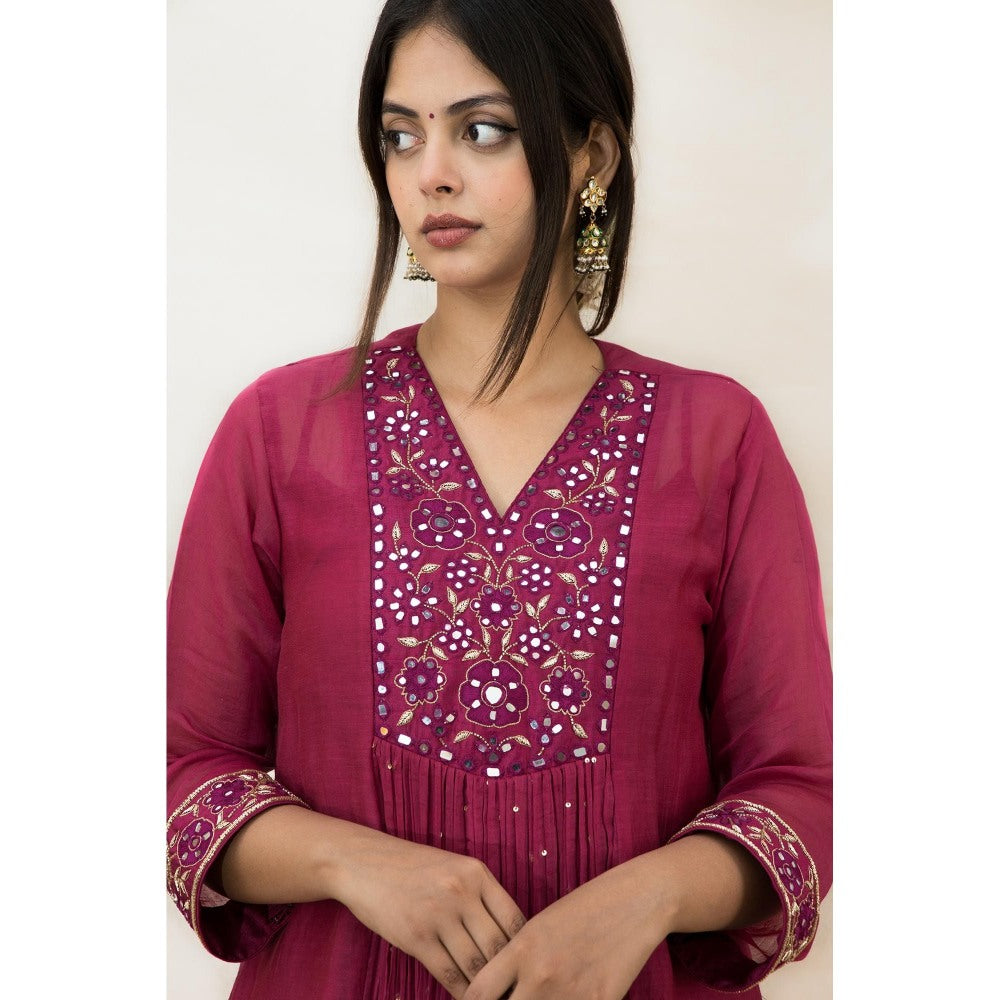 MITHI SUPARI Plum India Embroidered and Mirror Work Anarkali Kurta with Pant (Set of 2)