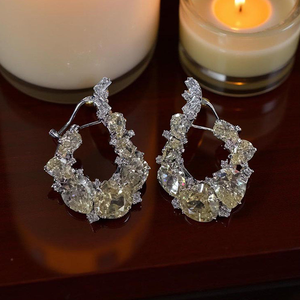 Description : Turn every moment into golden hour with our golden aurora yellow sapphire hoops! A radiant celebration of warmth and luxury, these illuminating earrings are intricately set in hallmarked 92.5 sterling silver and add a dynamic and elegant silhouette. The chic open hoop design gives these earrings a graceful fluidity while making a statement. Put these on and let your ears do the talking- because life is too short to wear dull jewellery!!