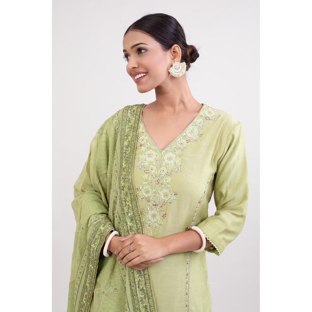 Monika Mathuria Datta Pista Green Embroidered Kurta with Palazzo and Dupatta (Set of 3)