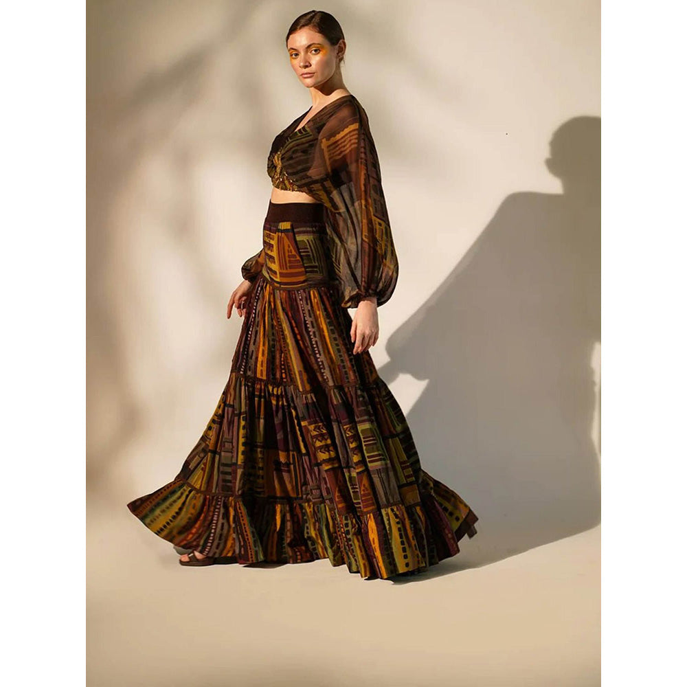 Nikita Mhaisalkar Multicolour Abstract Print Crop Top with Hand Baroque in Metallic