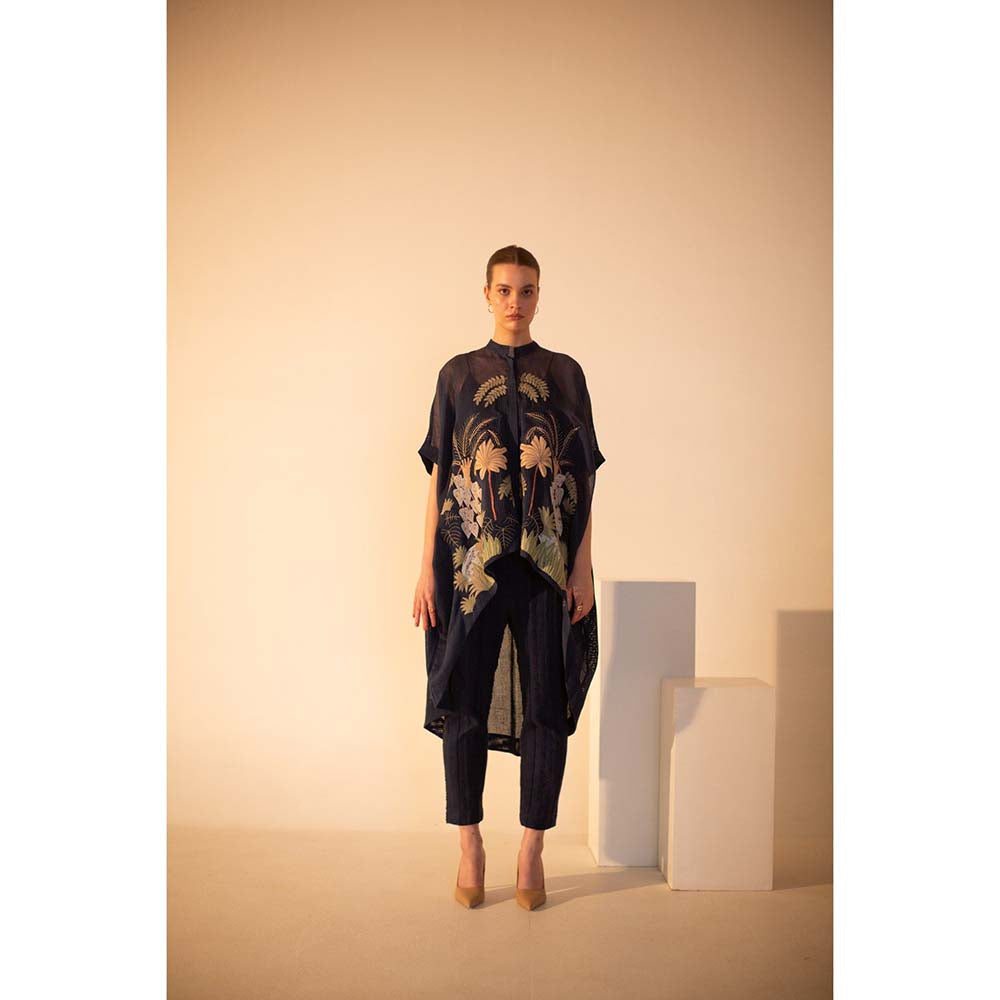 Description : Jazz up your look with this navy blue co-ord set from OJA. Crafted from linen, it is finished with half sleeves and a mandarin neck. Complete the look with a pair of sleek wedges and minimal jewellery.