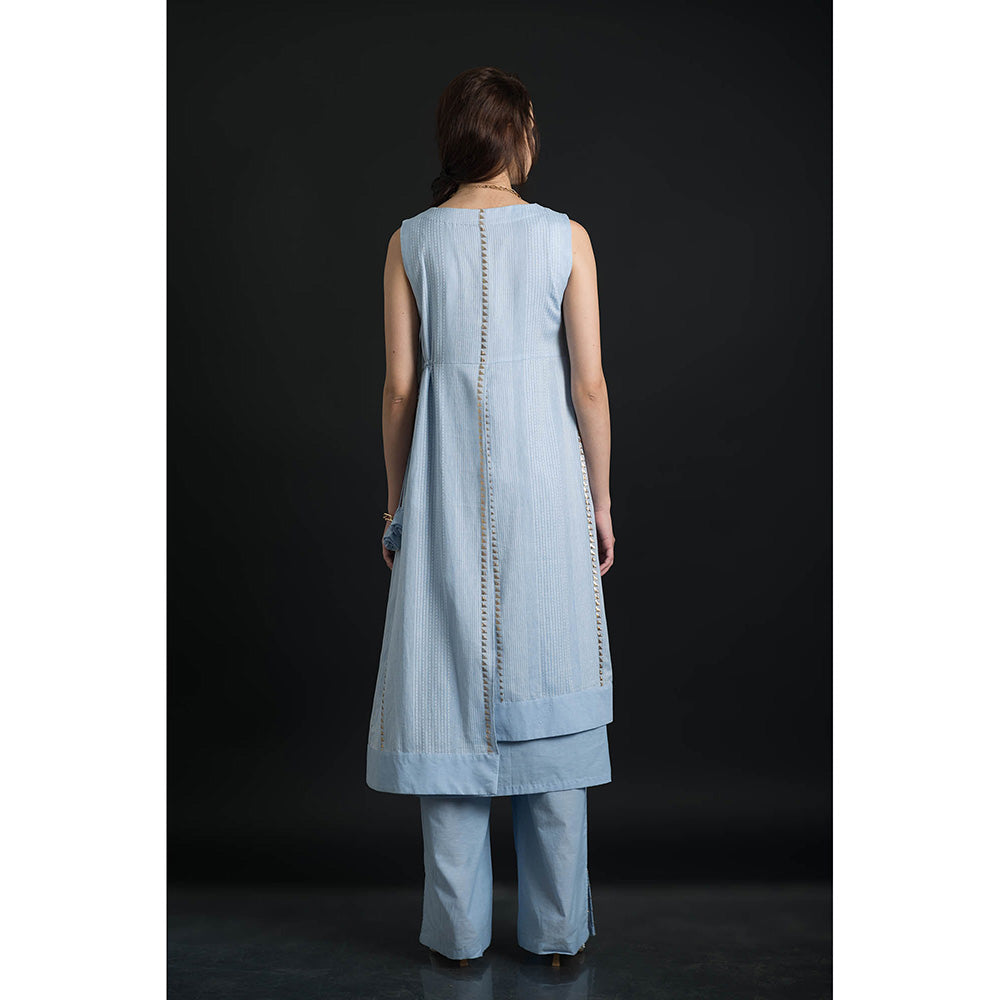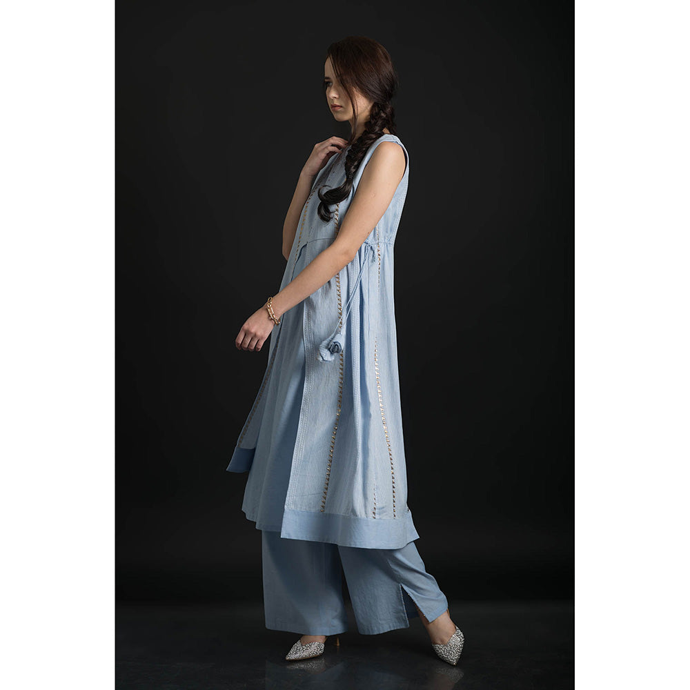 ORCR Timara Stripes Sleeveless Blue Top with Pant (Set of 2)