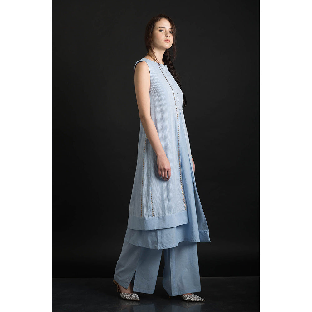 Timara Stripes Sleeveless Blue Top with Pant (Set of 2)
