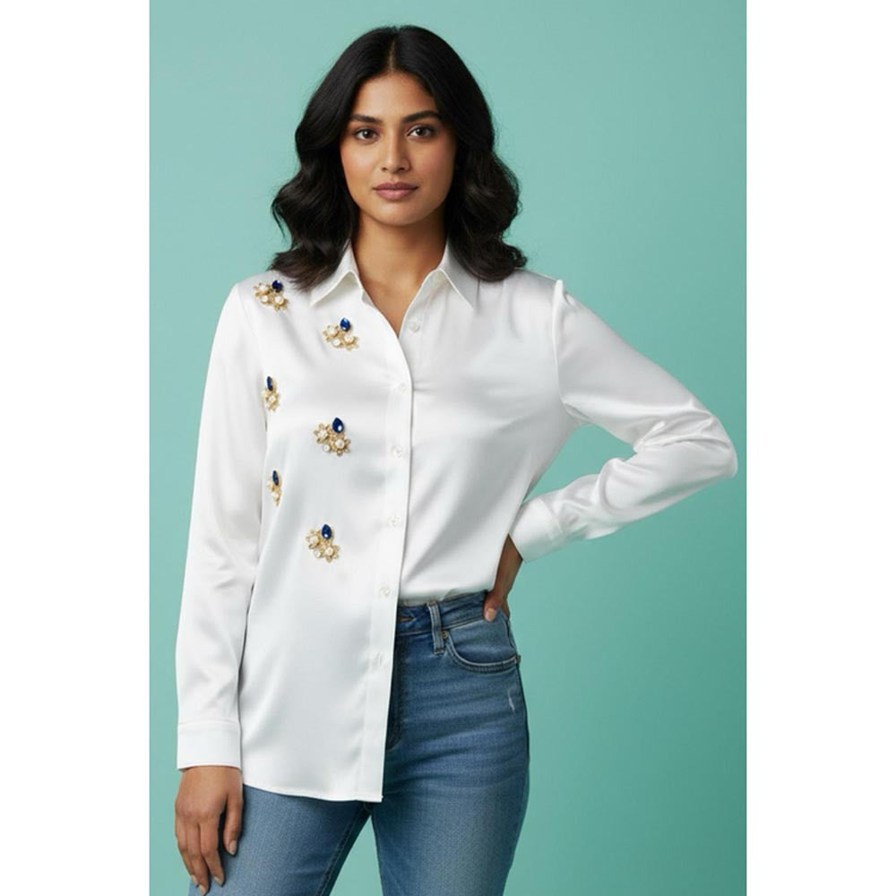 Guldasta White Embellished Satin Shirt