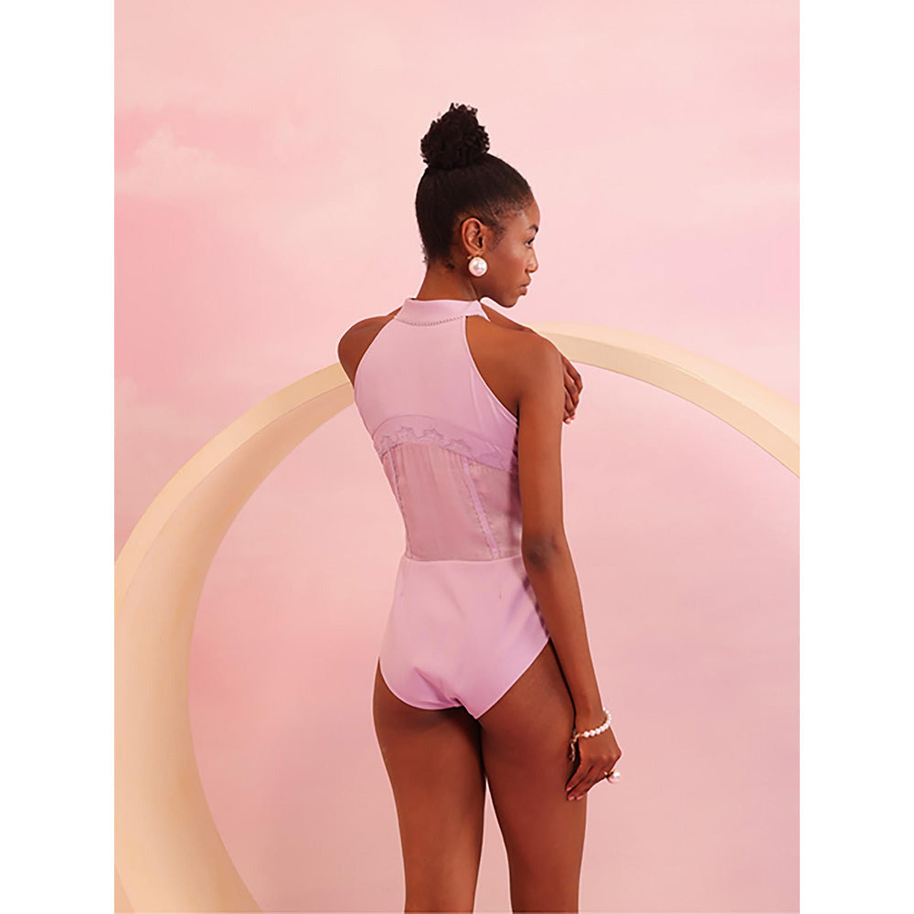 Description : This Halter-Style Bodysuit Exudes Elegance With Its High Neckline And Fitted Silhouette. The Upper Section Features A Sleek, Minimalist Design, While The Midsection Showcases Intricate Lace Detailing And A Corset-Inspired Structure, Adding A Touch Of Texture And Sophistication. The Lower Section Is Clean And Seamless, Ensuring A Comfortable And Flattering Fit. Ideal For Pairing With Skirts, Trousers, Or Layered Under Blazers, This Versatile Piece Transitions Effortlessly Between Formal Occasions And Stylish Casual Ensembles. Product Length: 30Inch Model S Size: S Model S Height: 5'7