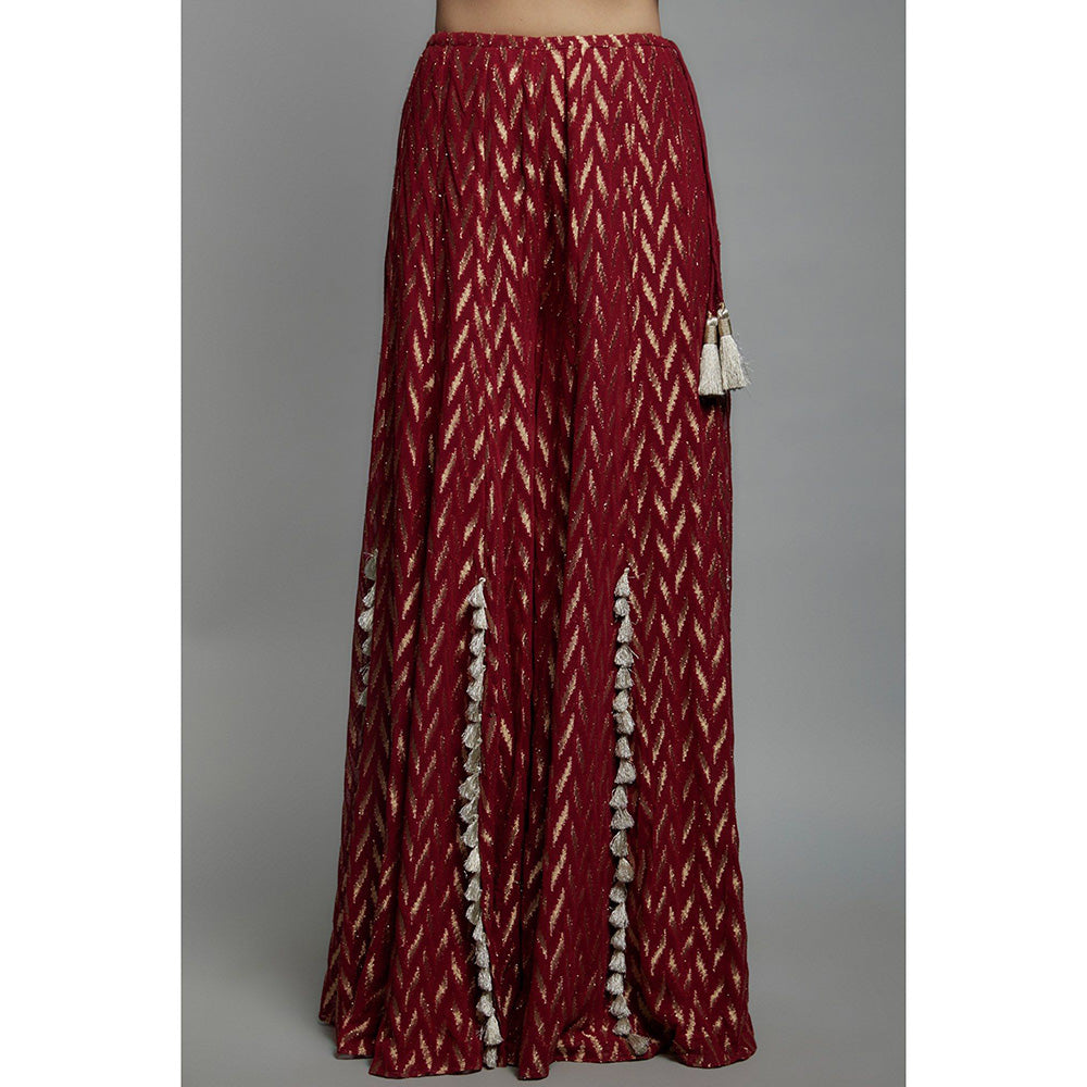 Payal Singhal Maroon Embroidered Back Tie-Up Choli with Sharara (Set of 2)