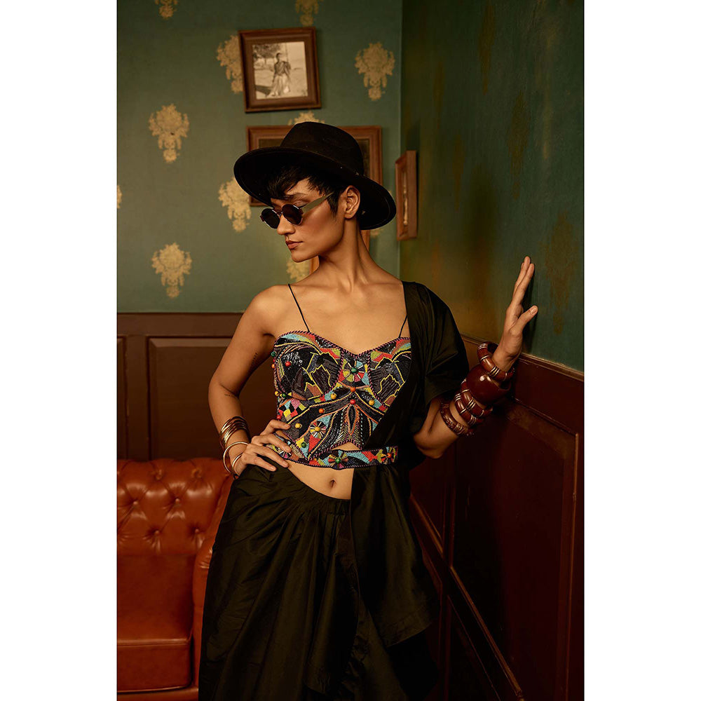 Olive Mystique Blouse with Skirt, Dupatta and Belt (Set of 4)