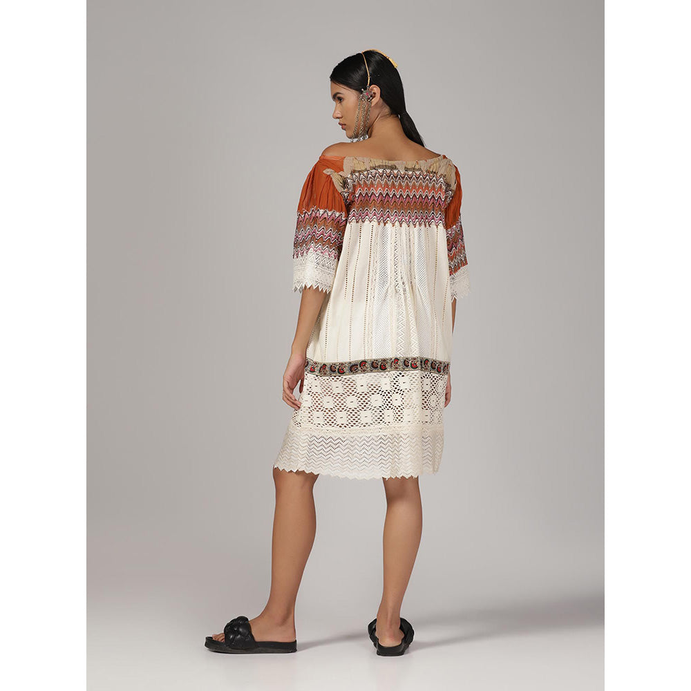 RINA DHAKA Women'S White Self Design Knee Length Dress