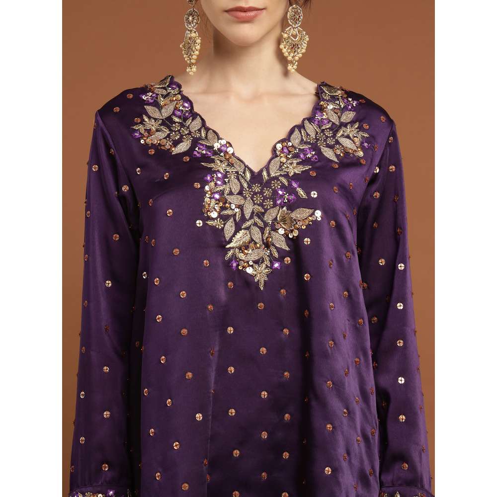 RIRASA Ajayan Satin Purple Kurta with Pants (Set of 2)