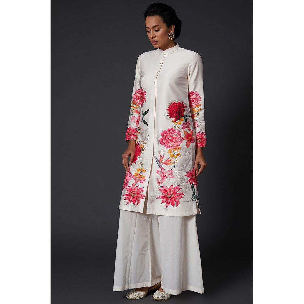 Ivory Floral Printed Kurta & Palazzo (Set of 2)