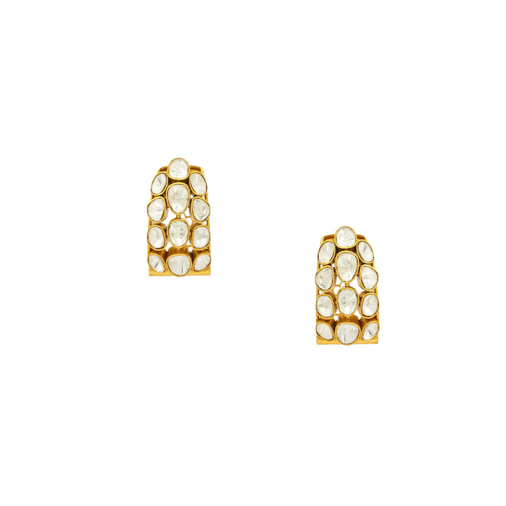 Description : Ruby Raang's s glass Kundan circular earrings are a celebration of timeless tradition and exquisite craftsmanship. Designed in a classic round shape, each earring features hand-set glass Kundan stones that reflect a rich, royal allure. The intricate floral pattern at the centre adds a graceful charm, making them a perfect blend of heritage and elegance. Lightweight yet statement-worthy, these earrings are ideal for weddings, festive occasions, or adding a touch of grandeur to your look. Styling Tip: Pair them with a lehenga or Anarkali in jewel tones. Opt for a sleek bun or braided updo to showcase the detailed Kundan work beautifully.