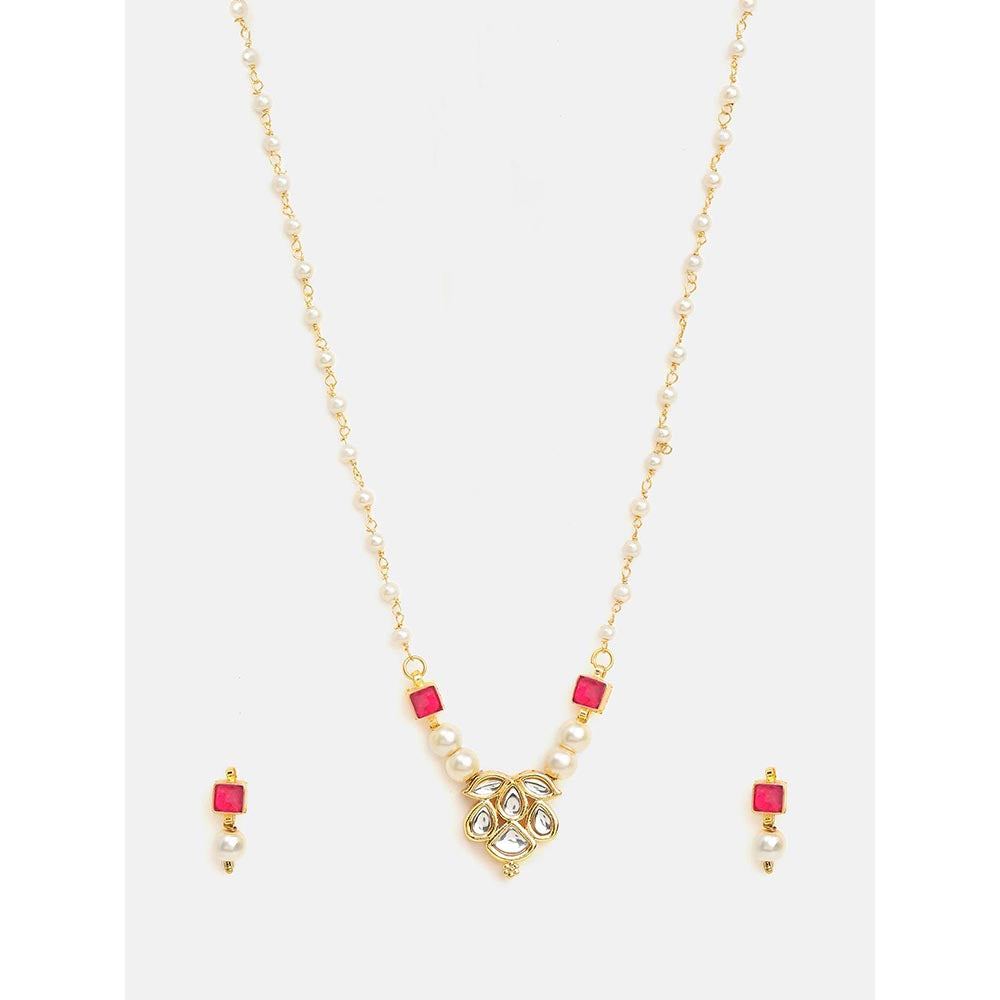 Ruby Raang Studio Rani Pearl Kundan Necklace with Earrings