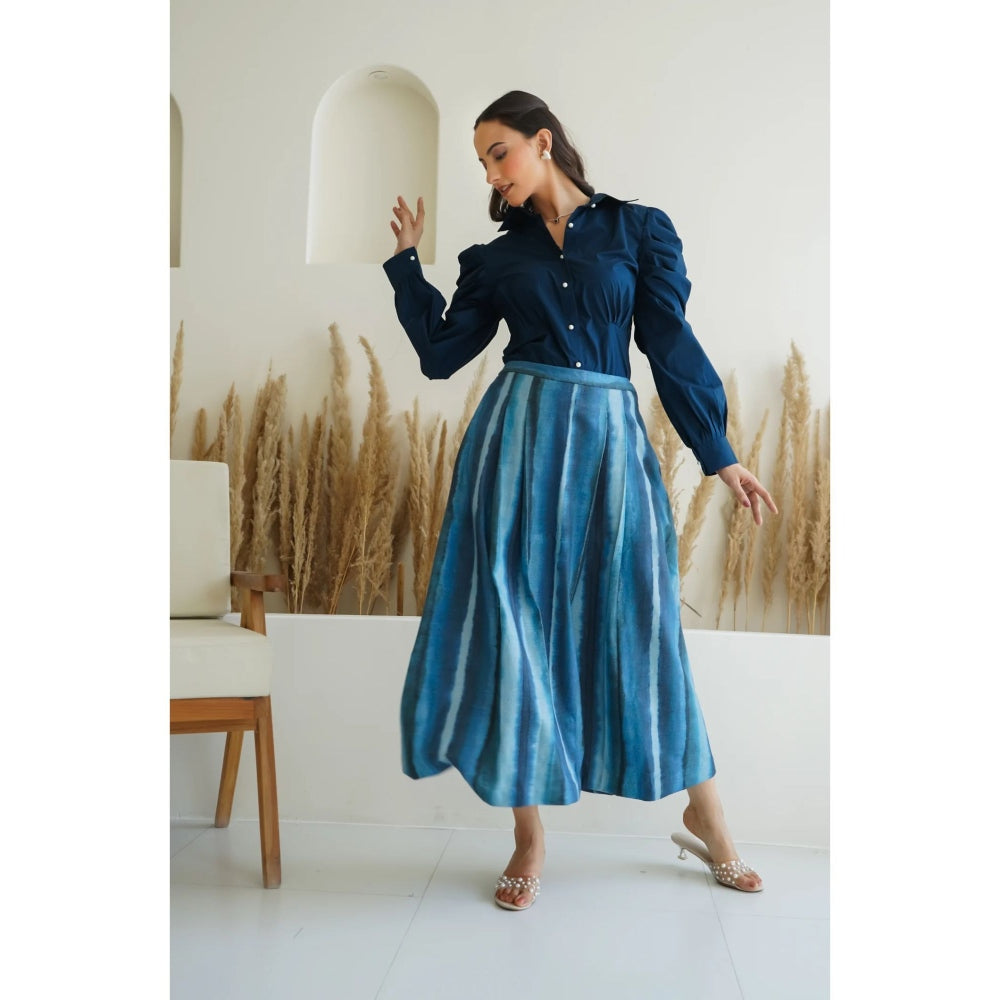 Ruhm Blue Ocean Ink Shirt with Skirt (Set of 2)