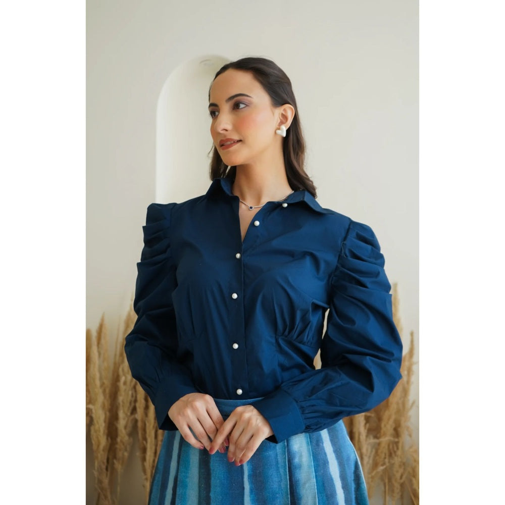 Description : Channel Effortless Elegance With Our Ocean Ink Skirt And Shirt Set, A Stunning Blend Of Structured Tailoring And Fluid Design. The Set Features A Tailored Navy With Refined Gathers At The Sleeves And Pearl Button Accents For A Touch Of Sophistication. Its Sharp Yet Feminine Silhouette Beautifully Complements The Airy Charm Of The Pleated Wide-Leg Skirt.