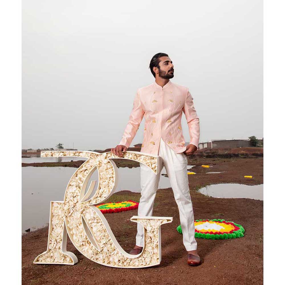 Description : Leave the crowd spellbound by stepping out in this captivating soft pink lotus embroidered jodhpuri jacket and pant from Runit Gupta. Made from high-quality chanderi, this piece features full sleeves and a mandarin neck. Style it with a watch and shoes to complete the ensemble.