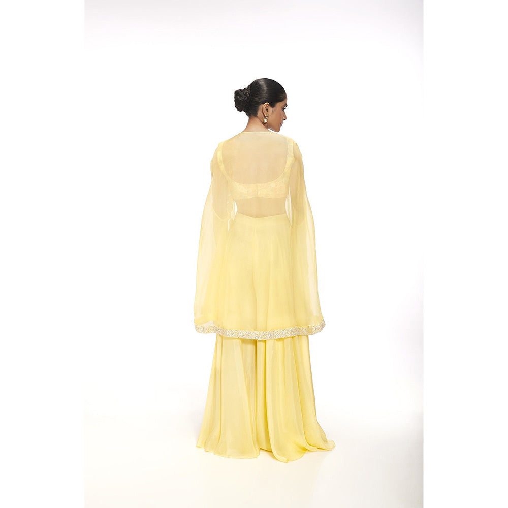 SAYAANIKA Zinnia Yellow Floral Embellished Cape with Blouse and Palazzo (Set of 3)
