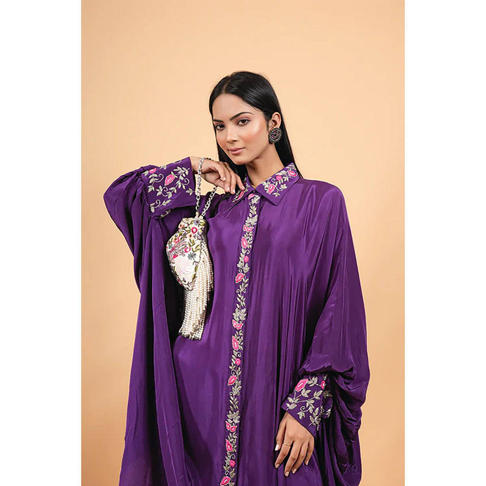 Studio Chiraiya Purple Heavy Indian Kaftan with Pant (Set of 2)