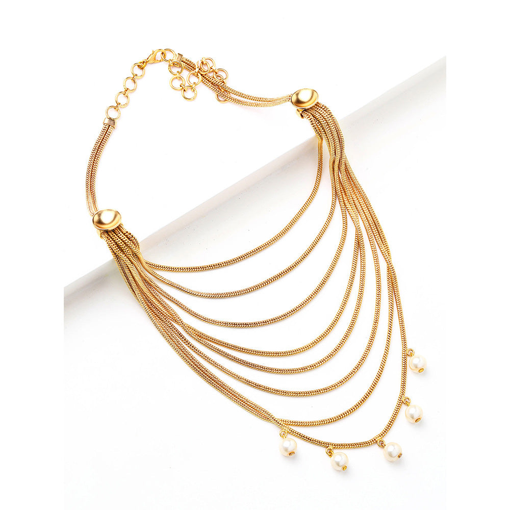 Gold Multi Chain Necklace With Pearls
