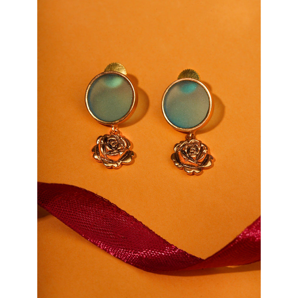 Suhani Pittie Gold Plated Round Blue Acrlic And 3D Rose Earring