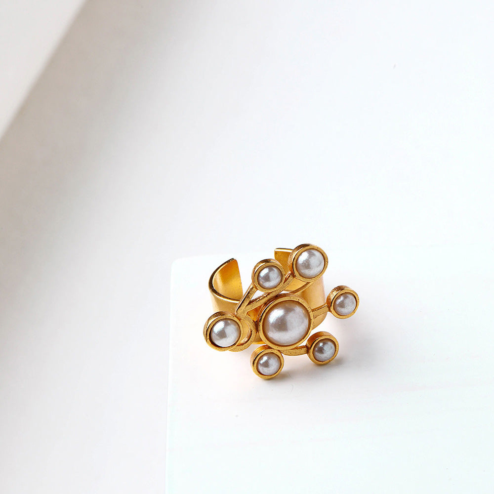 Description : Minimal Yet Elegant, Make A Sophisticated Statement With This Pearl Cluster Ring. Wear It On Your Index Finger And Match With A Pink Manicure. This product is handcrafted in 22K gold plated copper