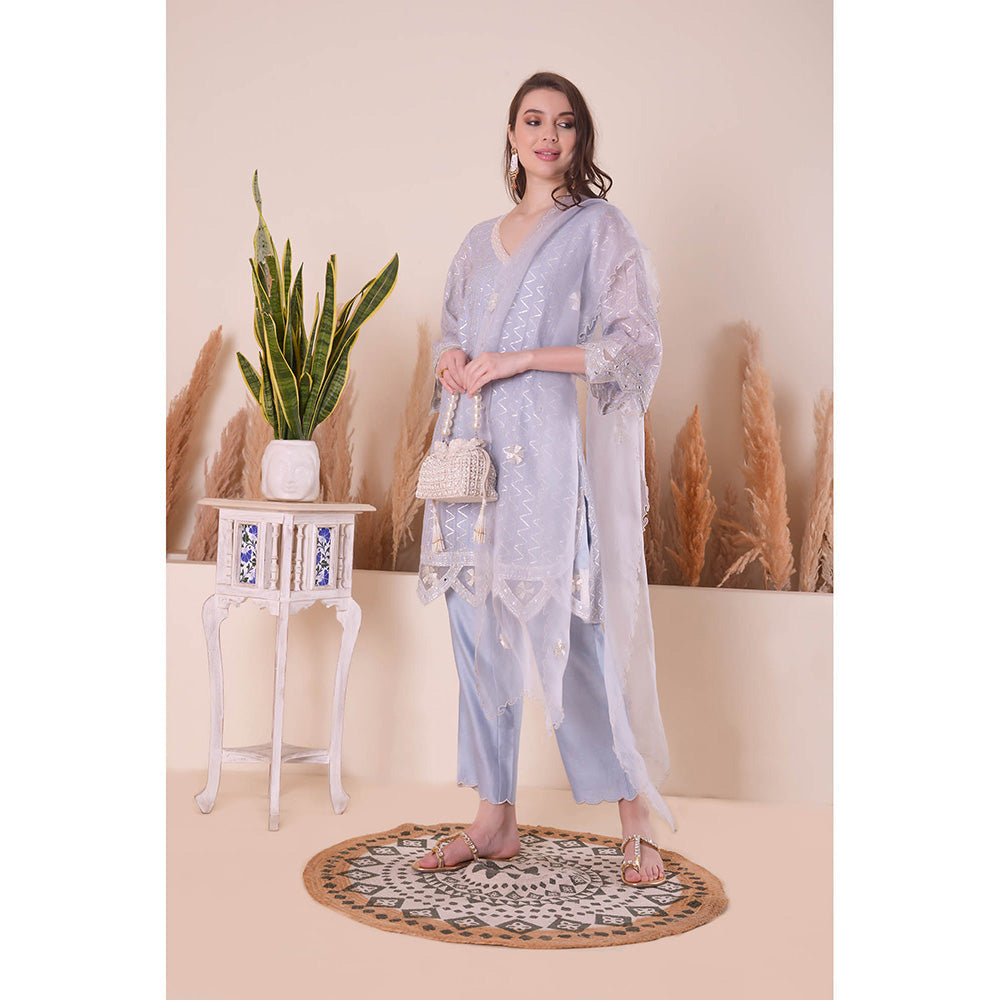 SURABHI ARYA Powder Blue Grace Kurta with Pant and Dupatta - Lavender