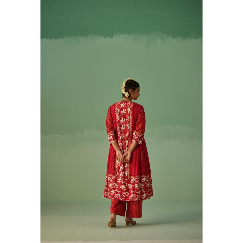 Surbhi Gupta Red Antifit Kurta and Trouser (Set of 2)