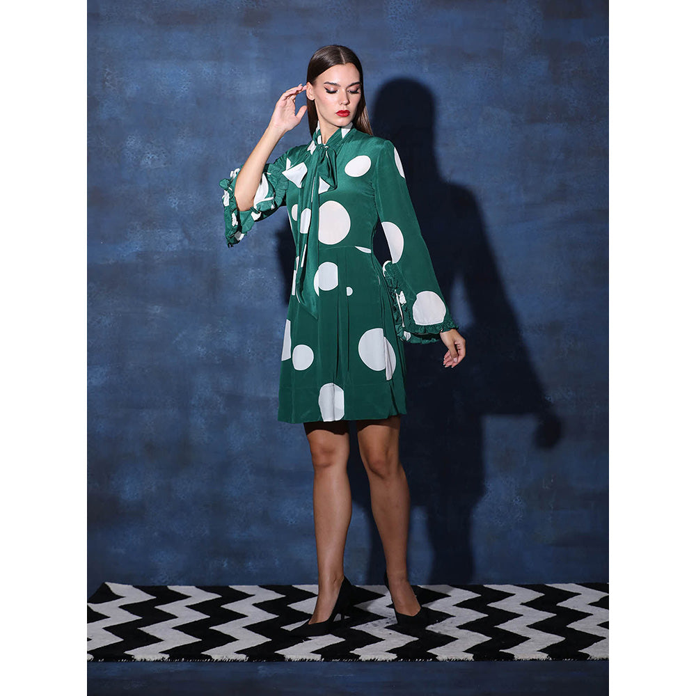 Scarf Collar Dress With Flared Detailed Sleeves And Cutout At Back