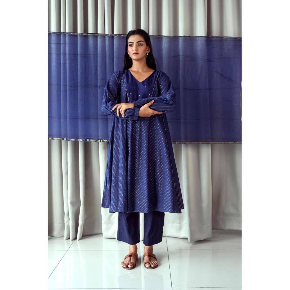 Taro India Blue & Gold Anarkali Kurta (Set of 3)