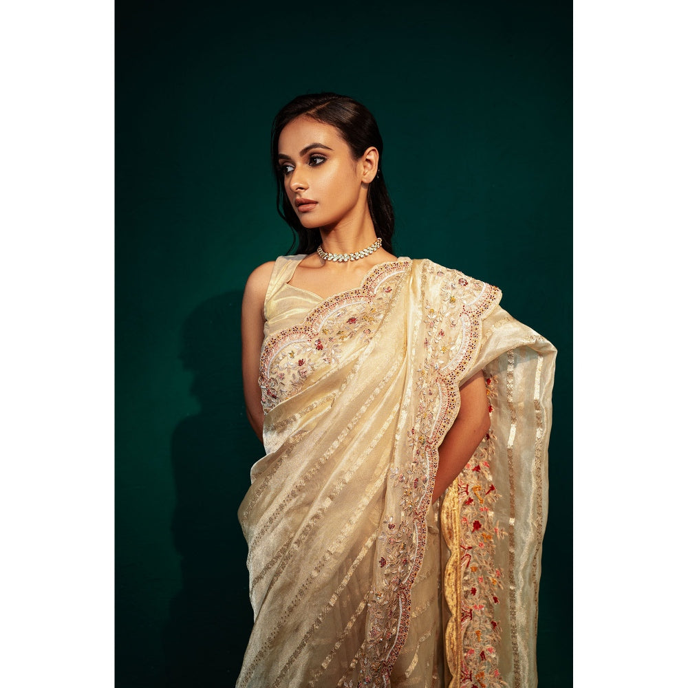 Beige Chanderi Tissue Saree with Unstitched