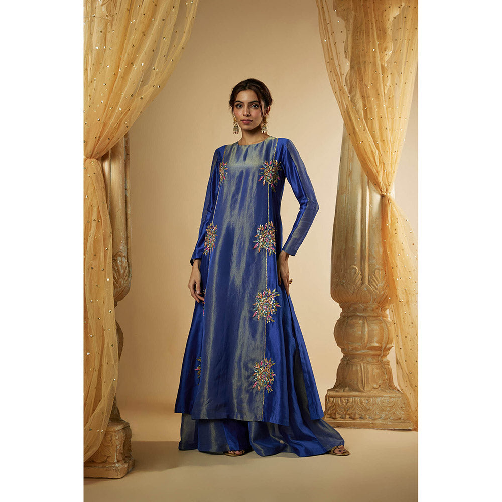 THE AARYA Ink Blue Chanderi Zardozi Embroidered Kurta with Palazzo and Dupatta (Set of 3)