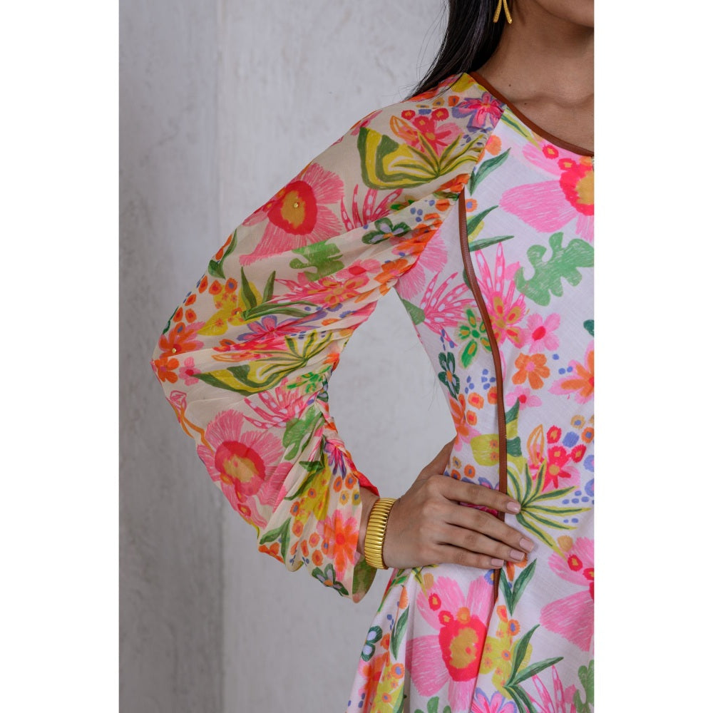Description : Behold This Assymetric Cut Dress With An Edgy Take On The Hem & Sleeves. The Overall Look Is Further Punctauted With Brown Leather Detailings That Trace The Princess Lines & The Neckline.