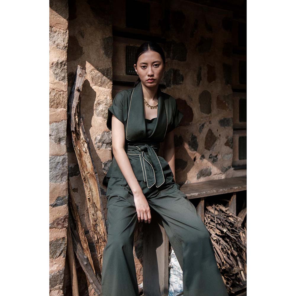 The Terra tribe Olive Berlin Shawl Collar Jacket with Belt (Set of 2)