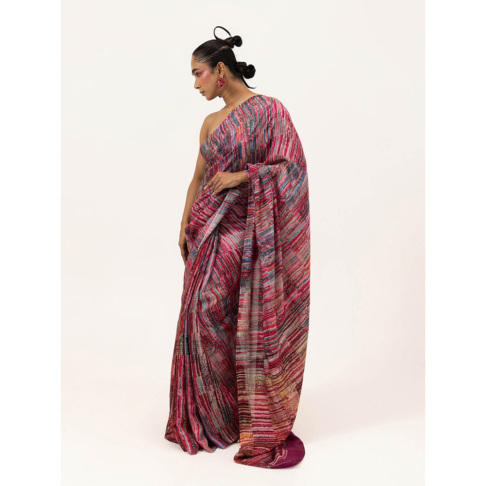 Crimson Tide Silk Saree with Unstitched Blouse - Pink