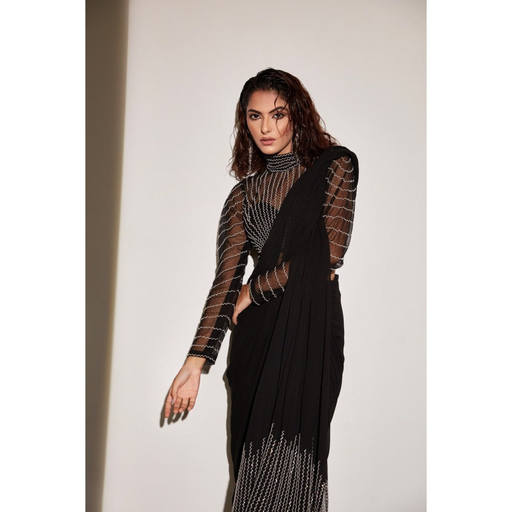 Vedika Soni Black Pre-Stitched Embroidered Saree with Stitched Blouse And Petticoat