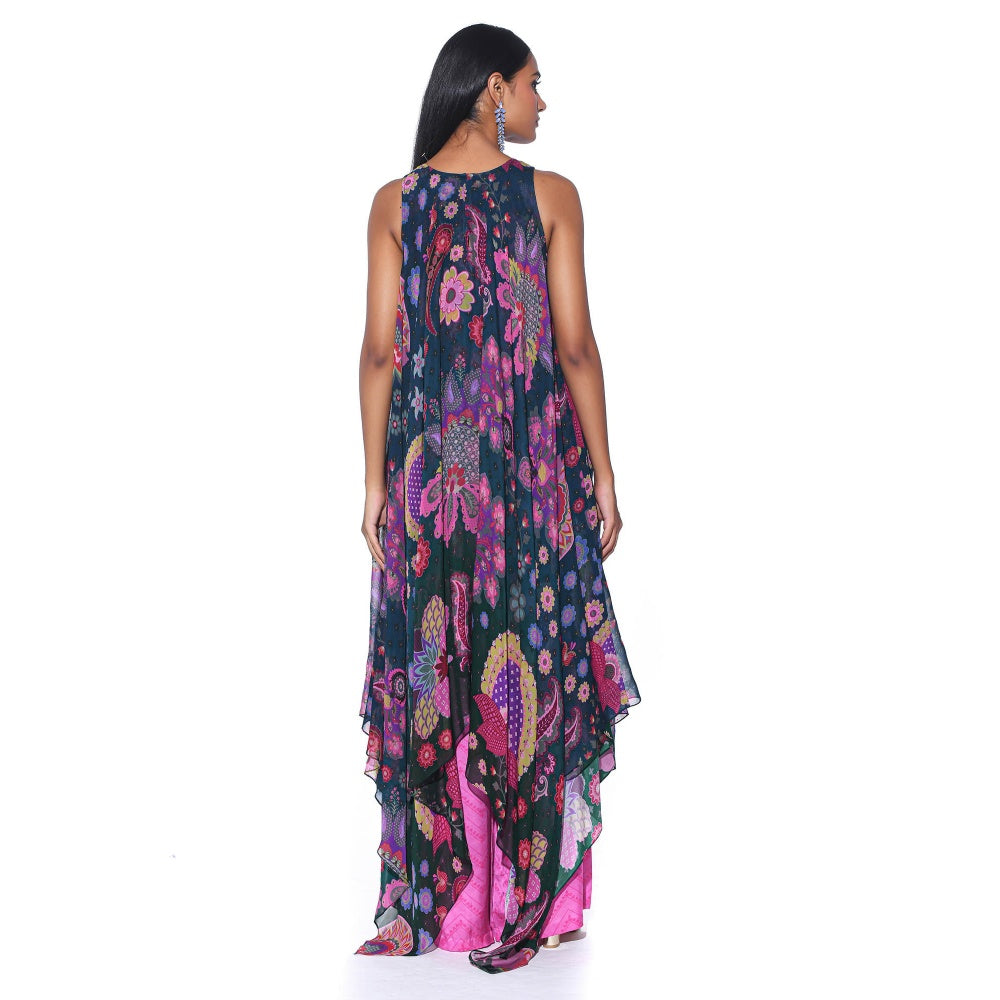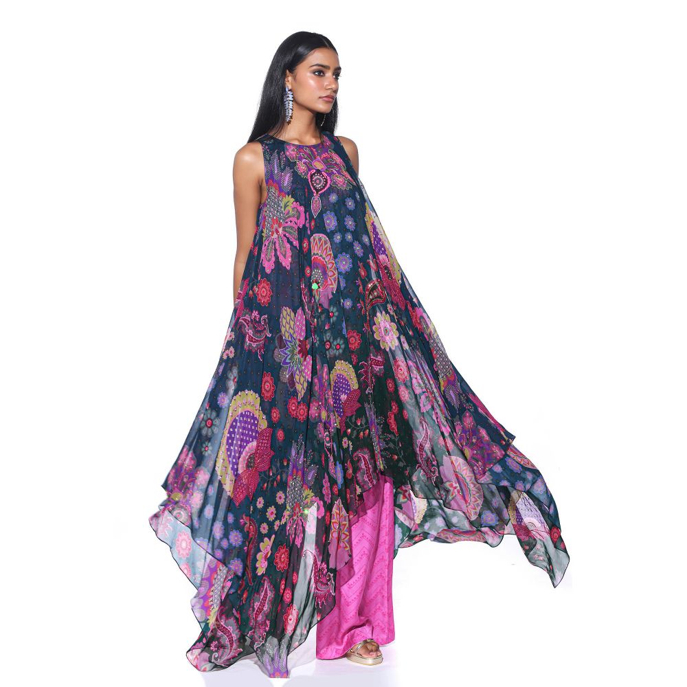 Description : Amp up your wedding wear wardrobe with Siddhartha Bansal collection. It is crafted from high-quality fabric. It features teal printed tunic, pant featuring sleeveless, round neck style with straight, mid waist rise style. Pair it with matching jewellery, heels and a big smile for the gorgeous look.