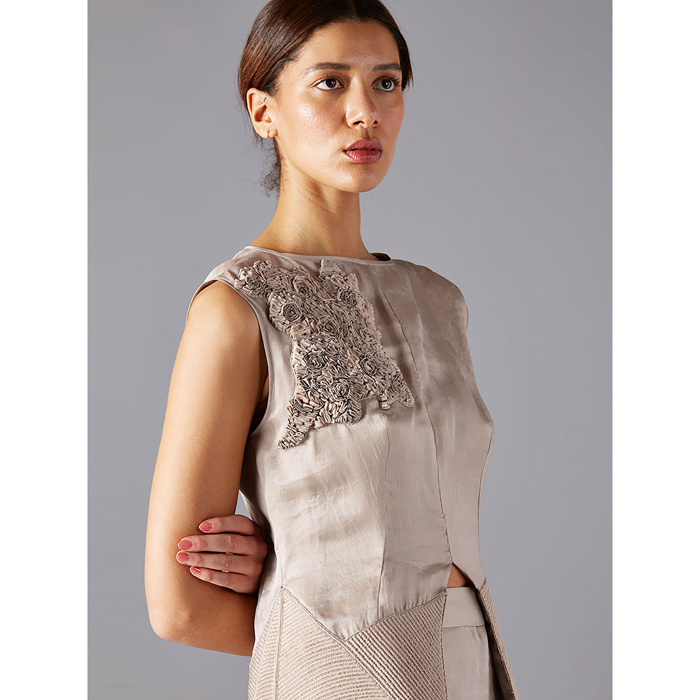 Description : Lend a fashionable edge to your western wear collection with this safari set from A Humming Way. Crafted from organza, this set features a textured pattern with an asymmetric neckline. To achieve a classy and refined look, pair it with block heels and a sling bag.
