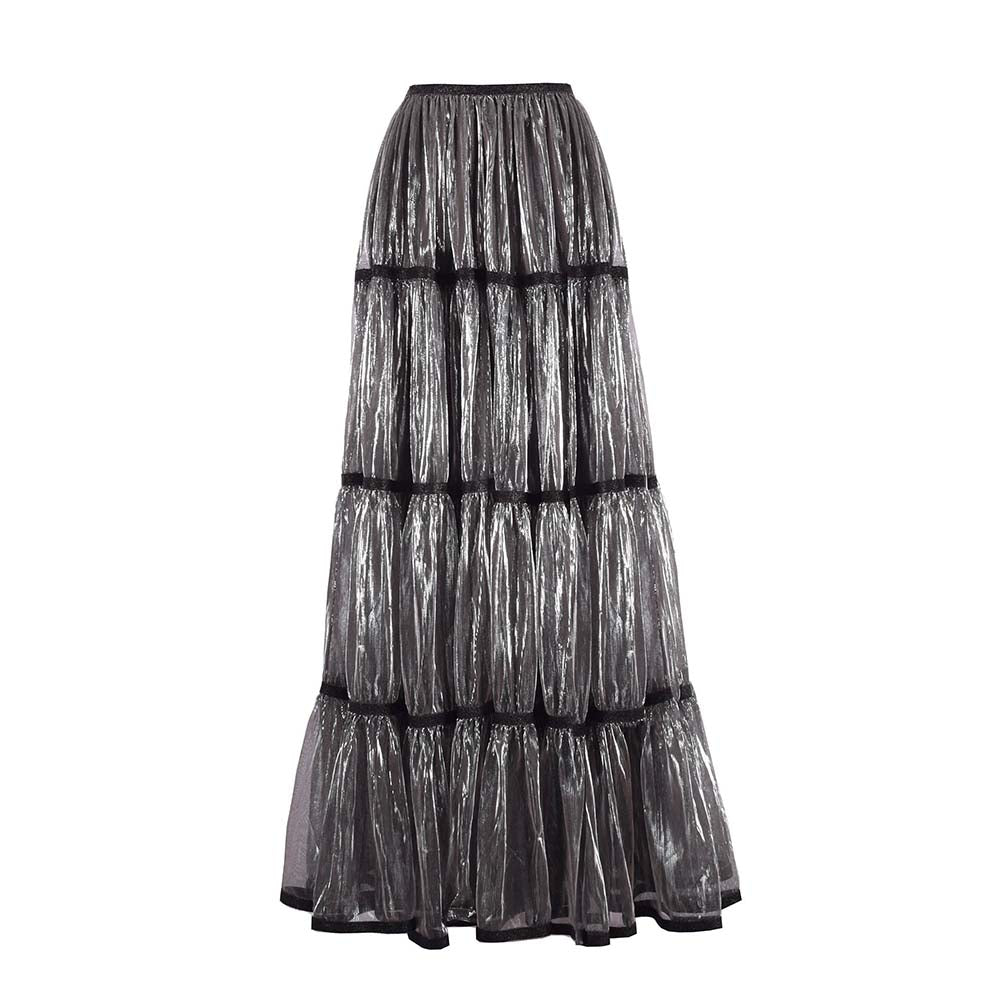 Charcoal Tiered Lurex Gathered Skirt