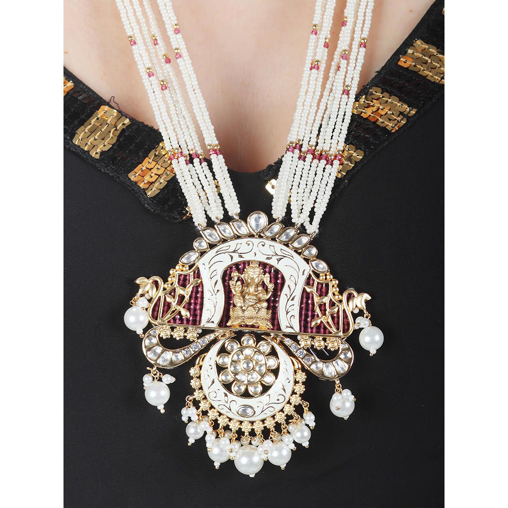 Akulya Jewels Lord Ganesha Kundan and Minakari Long Necklace with Beads (Set of 2)