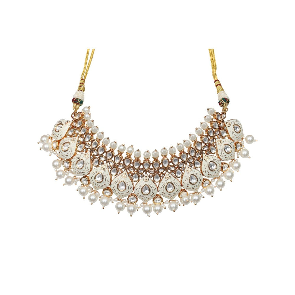 Akulya Jewels White Minakari Kundan Pearl Choker (Set of 3)