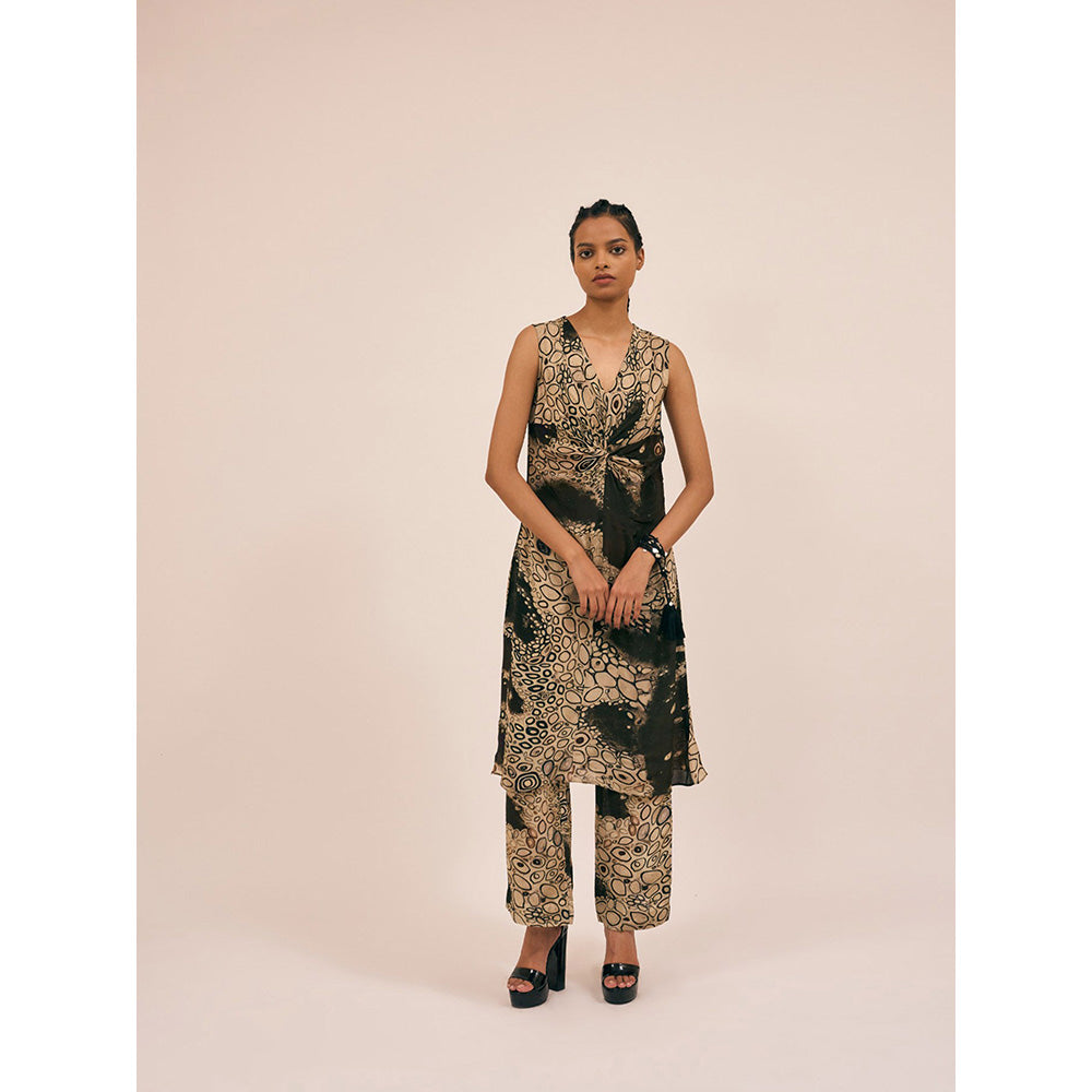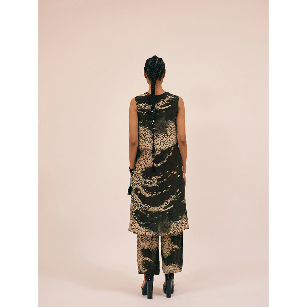 Description : Step into the world of fashion with this multi-color printed kurta from Amka India. Made from high-quality silk, the kurta features a sleeveless design and a v-neck. Style it with minimal jewellery and sandals to complete the ensemble.