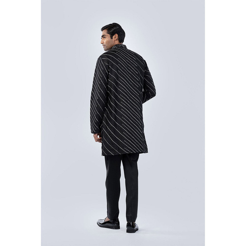 Description : Black Silver Resham Line Embroidered Kurta. Tailored to sartorial perfection from premium quality fabric, it assures a soft and soothing touch against the skin. The exquisite silhouette adds to its appeal.