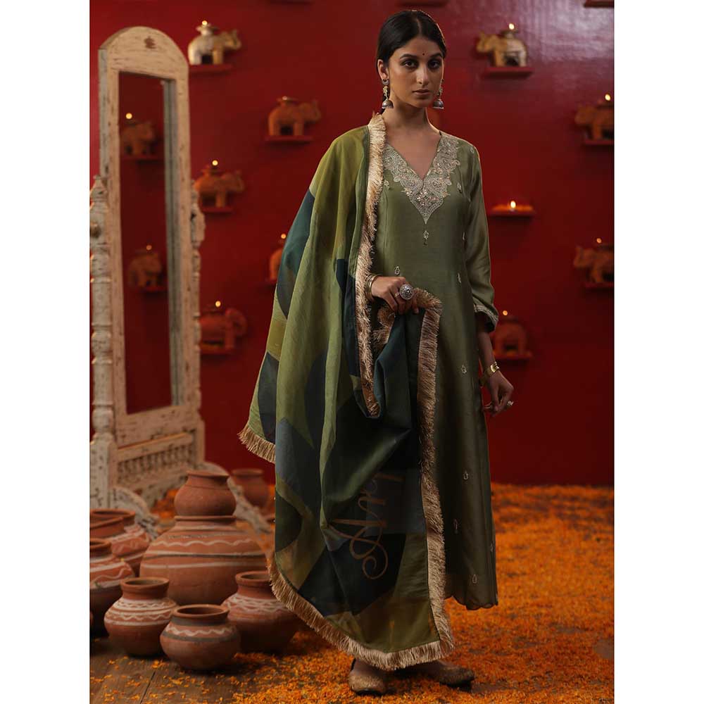 Arpita Sulakshana Pista Green Custom Letter Kurta with Churidar and Dupatta (Set of 3)