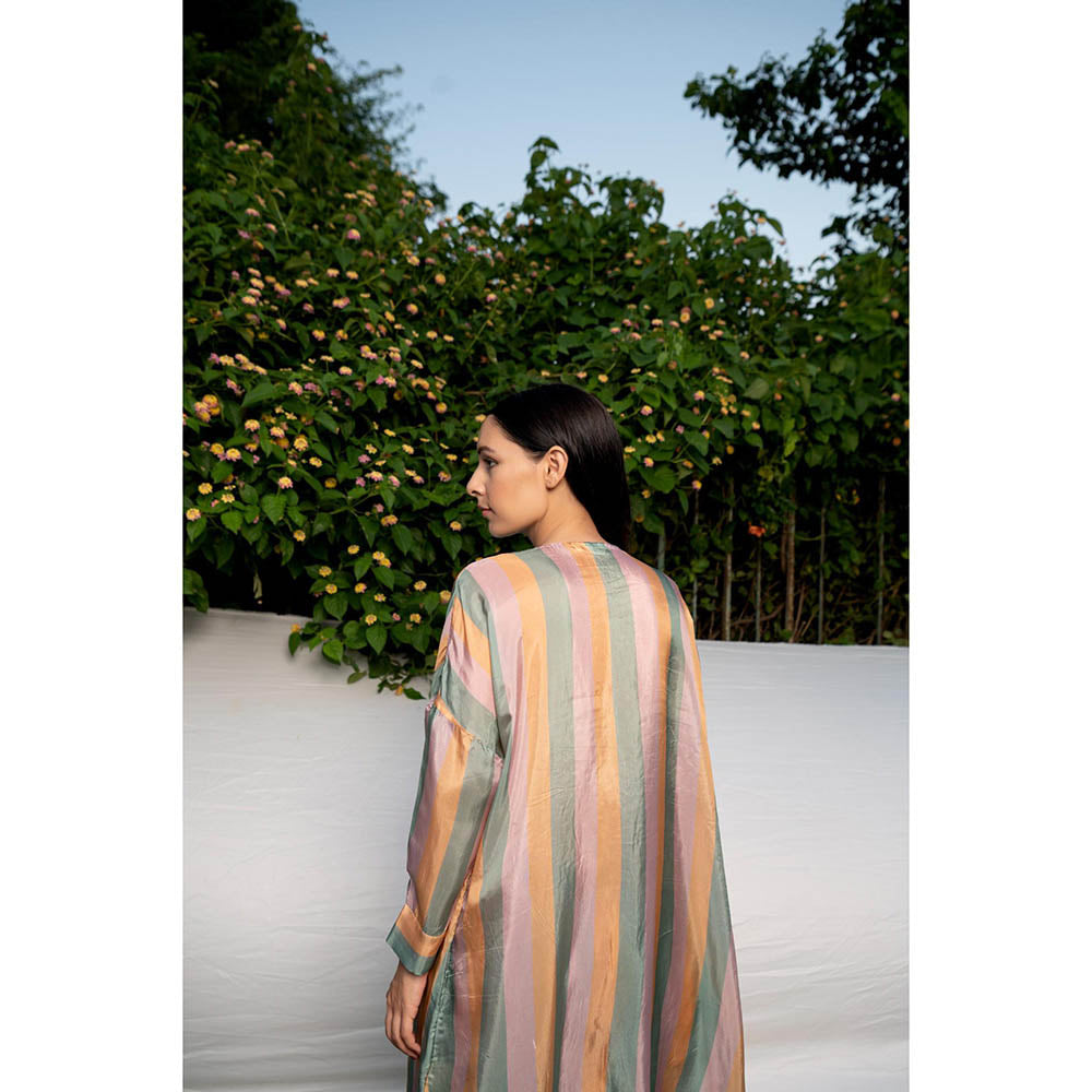 Description : Stripes Kurta with 3D flowers hand embroidered yoke