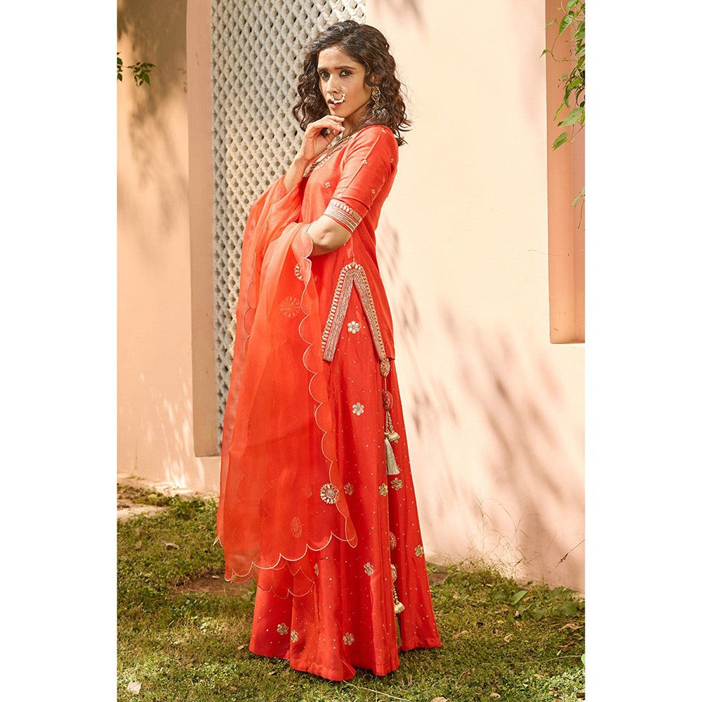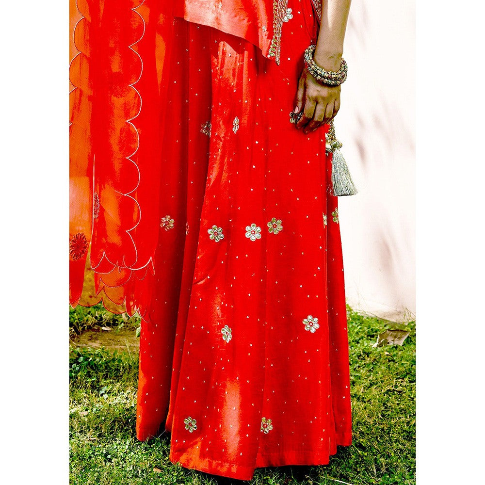 Red Embroidered Gota Patti & Nakkshi Top with Sharara & Dupatta (Set of 3)
